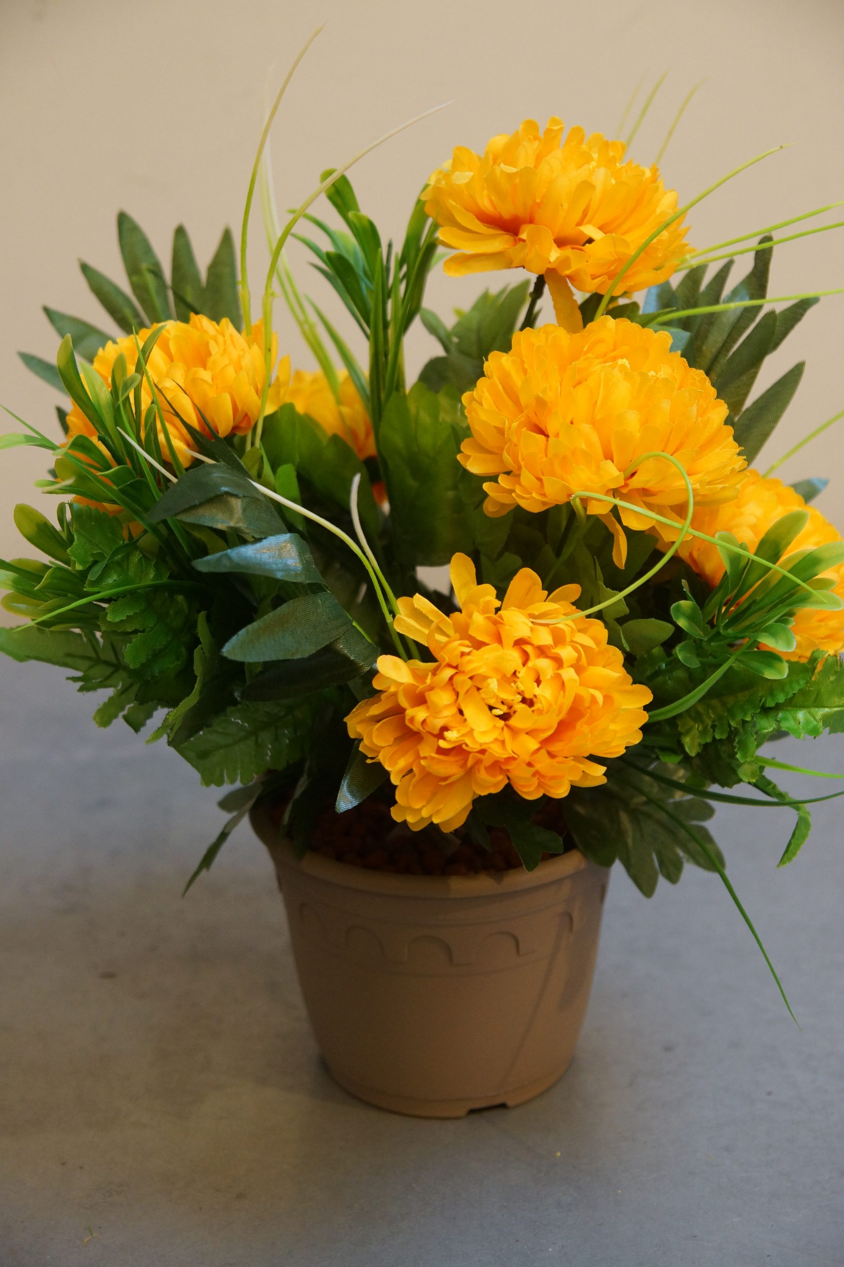 Pot de chrysanthèmes artificielles